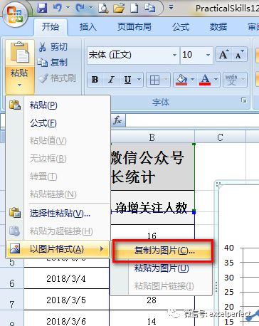 首先,選取圖表。然後,點選“開始”中的“貼上—以圖片格式—複製為圖片”如下圖所示。