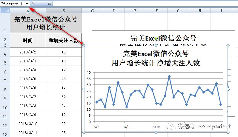 Excel將在工作表中貼上一張圖表的圖片,如下圖。