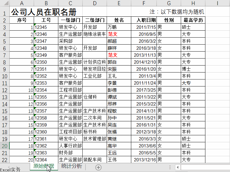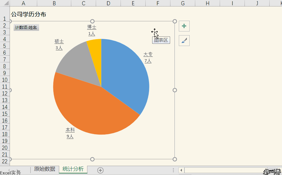 首先,我們先製作個數據透視圖《公司學歷分佈》。