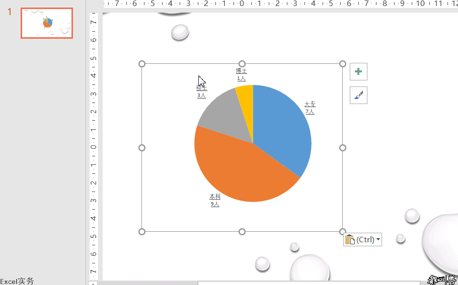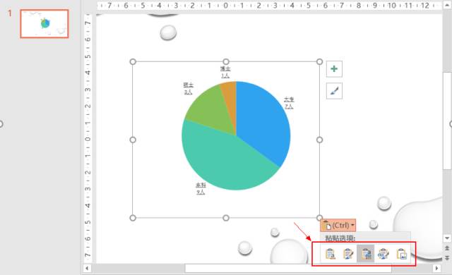 我們將這個圖表直接複製>貼到PPT中,有時存在顏色與先前不一致,可通過右下角貼上選項調整。