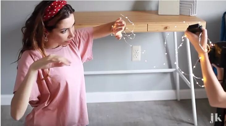 其實,這是一些以乾電池供電的小型串連燈泡,通常用於裝飾之用,拍攝時讓模特兒用手把這些燈泡拿著,就可以得到出乎意料的效果。