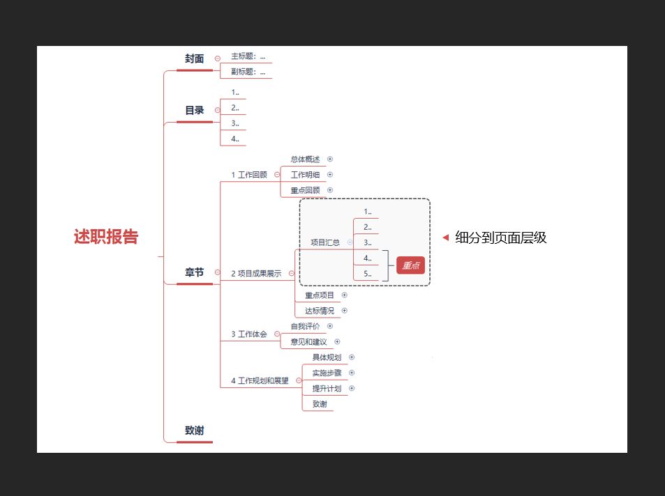 建議在Xmind中,最好能細分到頁面上的內容層級,也就是能寫清楚具體到頁面上的框架文案和要點。
