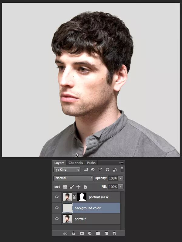 在人物下面創建一個新圖層,使用油漆桶工具(G)填補中性灰顏色(# dcdbd9)。